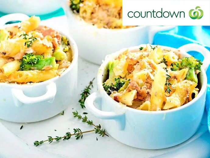 Creamy salmon and broccoli penne pasta pots are a tasty dinner option