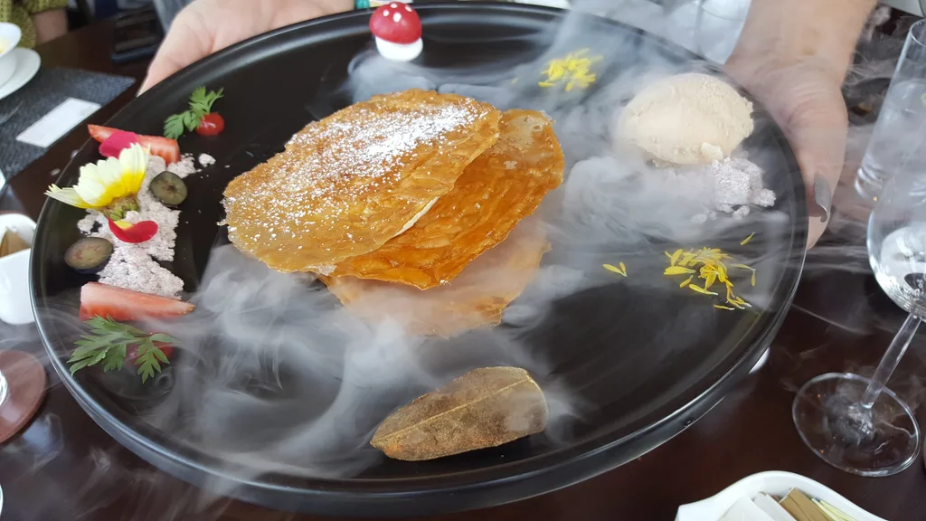 As you’d expect, the desserts are mind-blowingly good, too – exotic crispy black truffle custard ball with Macanese egg tart mille-feuille, and the berries and almond flower in a chilled Osmanthus soup comes with a dramatic burst of dry ice. Fancy!
