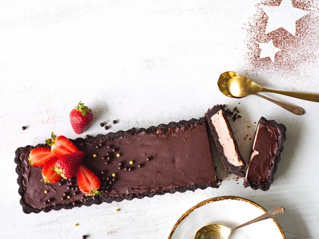 For a sweet and sophisticated summer dessert, look no further than this strawberry and chocolate no-bake tart. Best served chilled with a generous dash of strawberry puree on the side.
