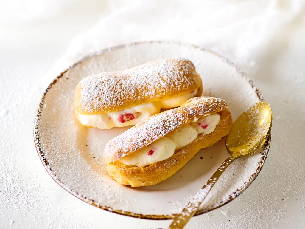 Become a professional French pâtissier in no time with this strawberries and cream eclair recipe. Light, sweet and filled with the divine combination of strawberries and cream, you’ll be the star of the show at your next dinner party.