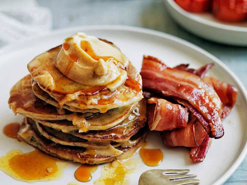 4.Heat a frying pan over medium-high heat. Fry bacon until crisp. Drain on paper towel. Serve pikelets with maple butter, bacon and extra maple syrup.