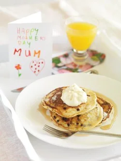 3.In a separate bowl, beat the egg whites until they are stiff. Use a large metal spoon to fold the egg whites gently into the pancake mixture, along with the chocolate chips.