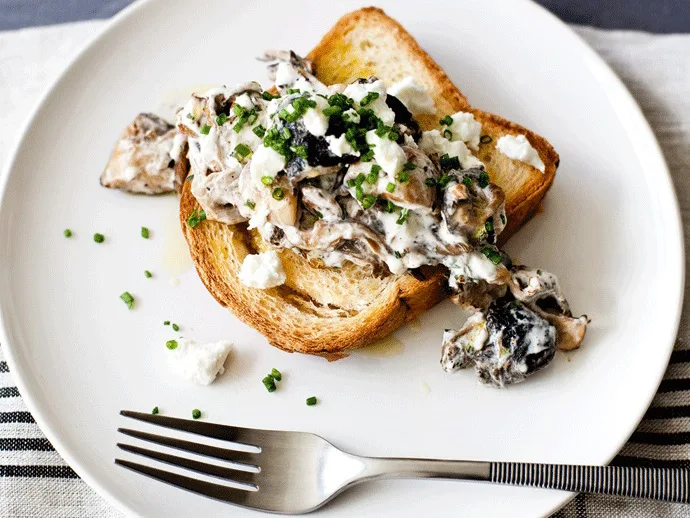 5.Put toasted brioche on serving plates and spoon mushroom mixture on top. Sprinkle with crumbled goat’s cheese or feta and drizzle with extra virgin olive oil.