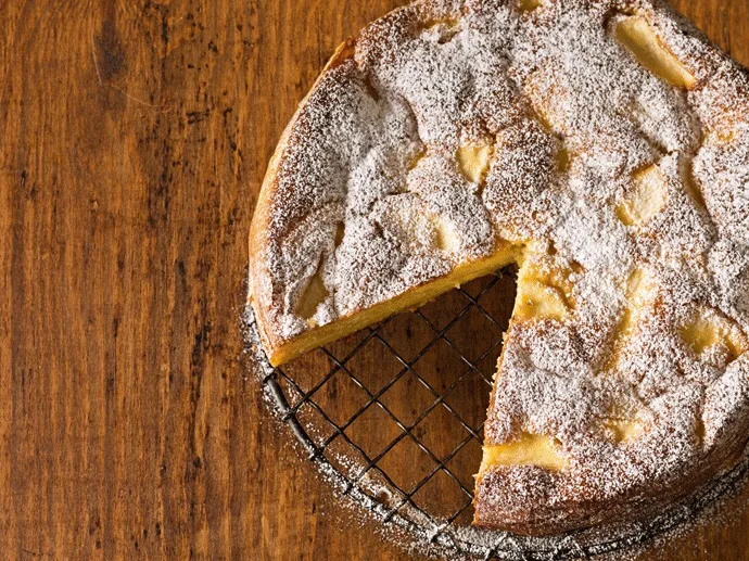 5.Turn mixture into prepared tin. Bake for 35-40 minutes, until golden brown on top and shrinking slightly from the sides of the tin. The cake should feel springy to the touch. Leave in the tin for 5 minutes to settle, then turn out onto a plate and peel off paper. Cover cake with a fresh piece of baking paper then a cake rack, and flip over again. Leave until cool. Dust with icing sugar before serving.
