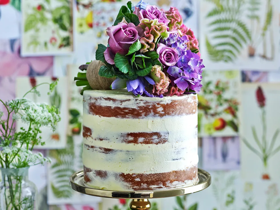 Assemble and complete the cake 3 hours ahead. Ask your florist to make a bouquet of organic flowers that can be secured to the top of the cake. Match the flowers and colours to your theme. Unfilled cakes can be frozen for up to 3 months. Passionfruit curd can be made 2 weeks ahead; keep covered in the fridge. Lemon curd would also be delicious in this cake; simply swap the passionfruit pulp for lemon juice.