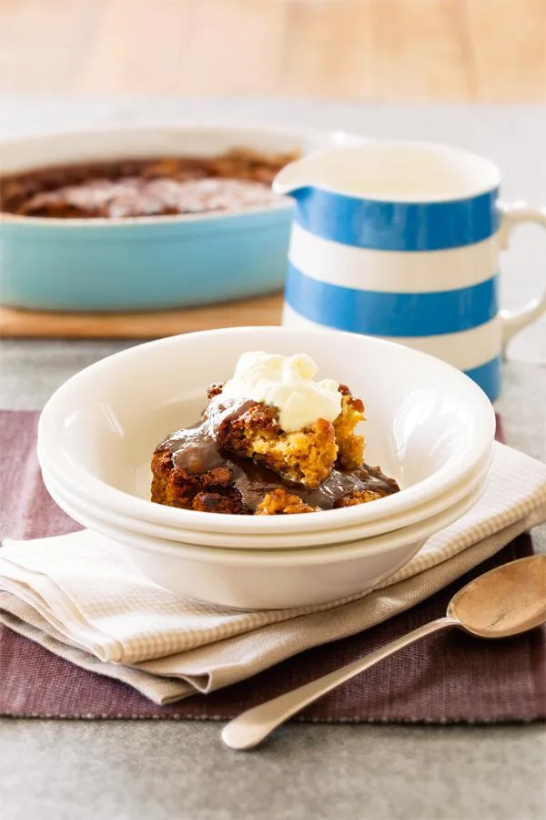 3.Gently pour boiling water over the mixture and then bake for 45 to 50 minutes until pudding tests cooked when a skewer inserted into the sponge layer comes out clean. Serve hot.