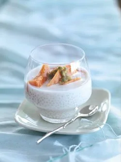 4.Stir the sago into the coconut cream and refrigerate until chilled and thick. Serve the sago topped with lychees or mango slices and passionfruit.