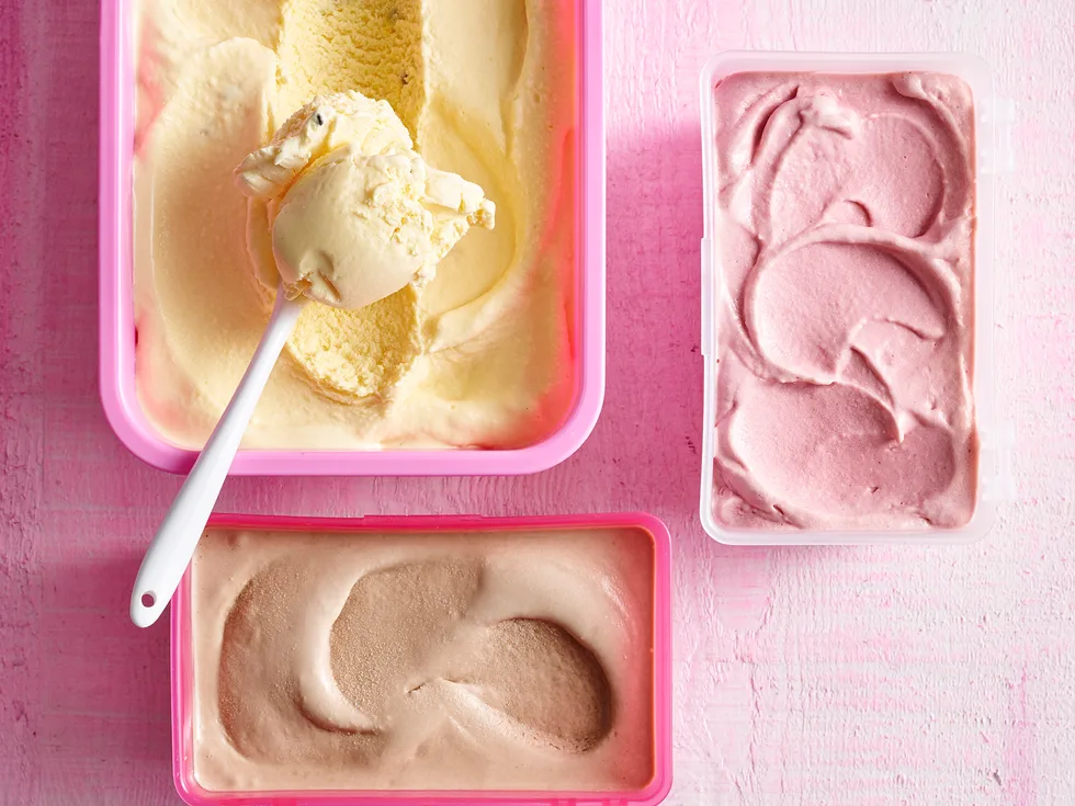 5.WITHOUT AN ICE-CREAM CHURN: Pour the flavoured custard into a shallow container and freeze for about 3 hours or until almost frozen. Spoon the almost frozen mixture into a medium bowl of an electric mixer. Beat on high speed for about 4-5 minutes or until smooth and thick. Pour the mixture into a deep 1.5-litre (6-cup) container; cover and freeze at least 6 hours or overnight until firm.