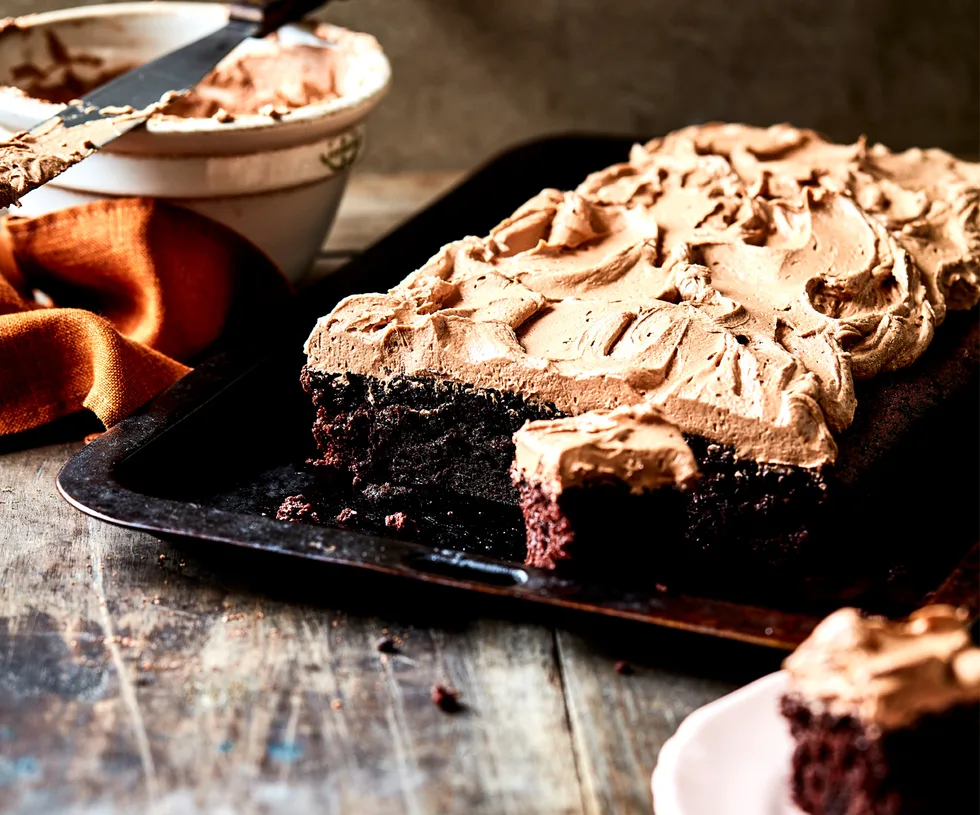 For the frosting, melt milk chocolate in a heatproof bowl over a pan of simmering water; leave to cool. Beat butter and sugar until pale (at least 3 minutes). Beat in golden syrup and then the cooled melted chocolate. Spread frosting onto cake with a palette knife.