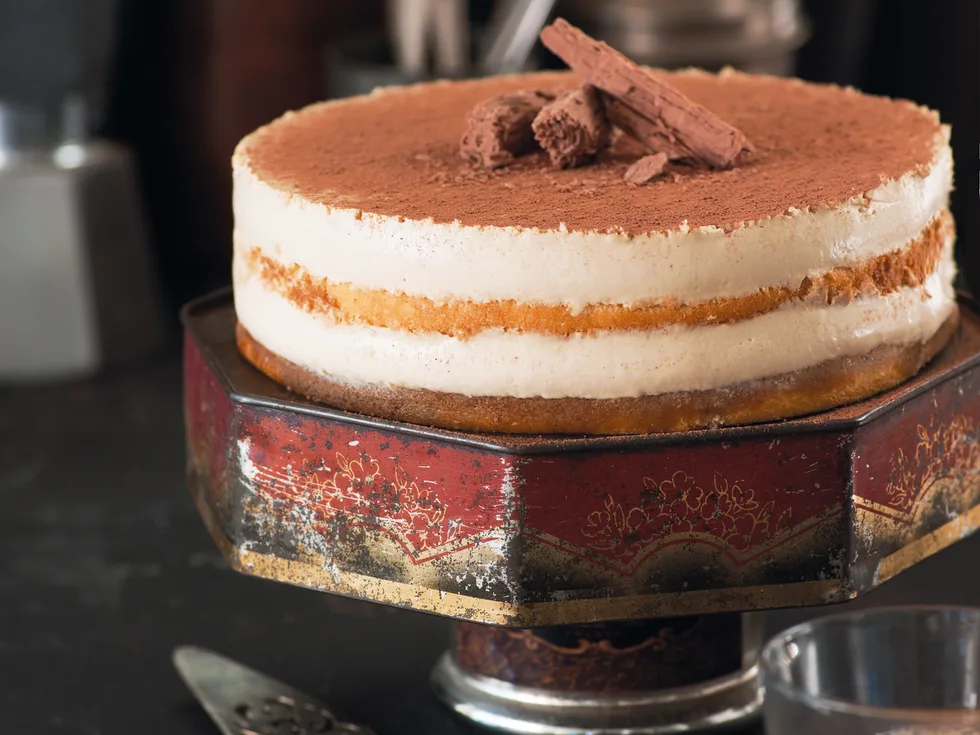 1.Cut sponge cake in half horizontally to make two layers. Arrange in the base of a lined springform tin. Combine water, coffee and marsala and spoon half the mixture over sponge layer in tin.