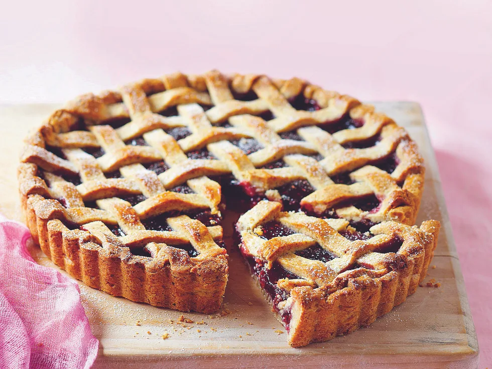 4.Reduce oven to 180°C/160°C fan-forced. Spoon jam into pastry case. Whisk egg white in a bowl. Arrange pastry strips in a lattice pattern over filling. Press edges to seal; trim off excess pastry. Brush top with egg white. Bake for 35 minutes or until golden. Cool completely in pan. Dust with extra sugar. Serve.
