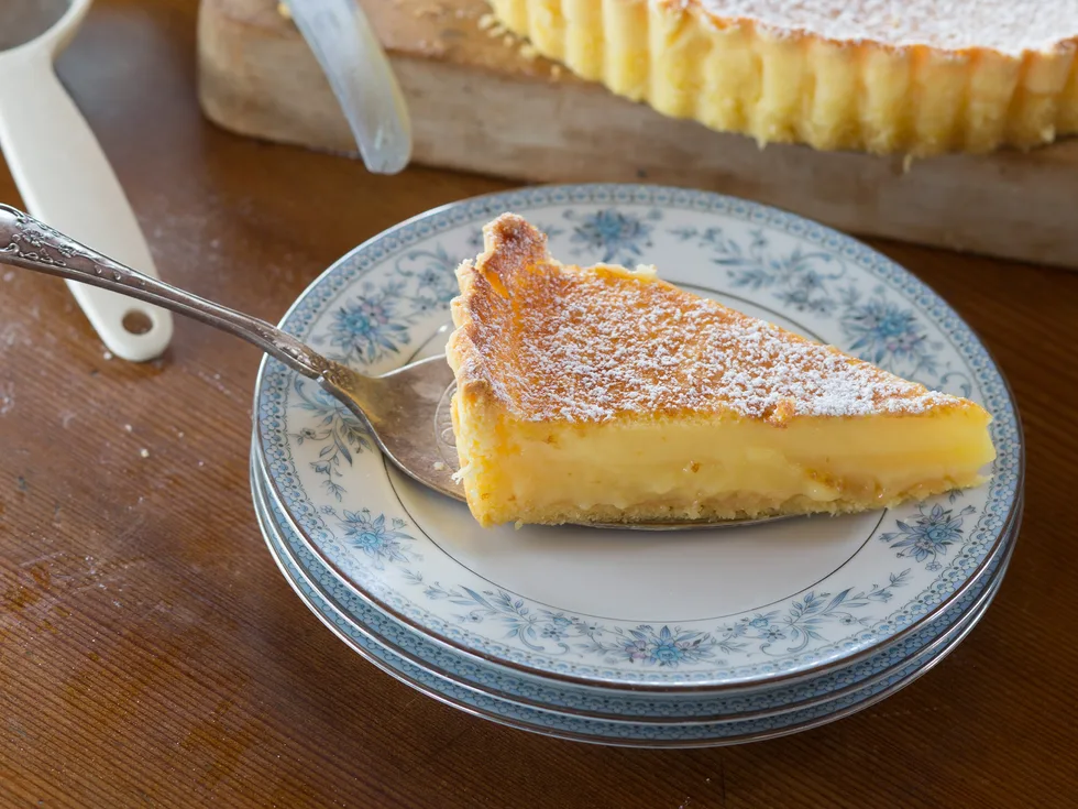 Place back on the oven rack and pour the filling into the pastry case, filling it right to the top before gently sliding back into the oven.