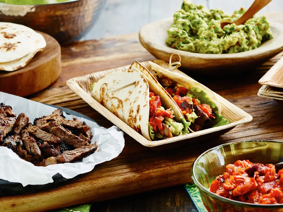 7.Time to Eat: Top your warm tortillas with steak strips, lettuce, guacamole, a generous spoon of salsa roja, coriander and a squeeze of lime to finish.