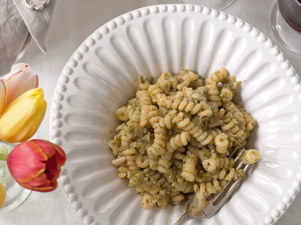 6.Cook the pasta in plenty of gently boiling well-salted water until al dente. Drain and tip into the frying pan with the sauce, adding the cheese. Toss gently and serve from the pan (if the pan isn’t big enough, transfer pasta to a heated serving bowl and toss with sauce).