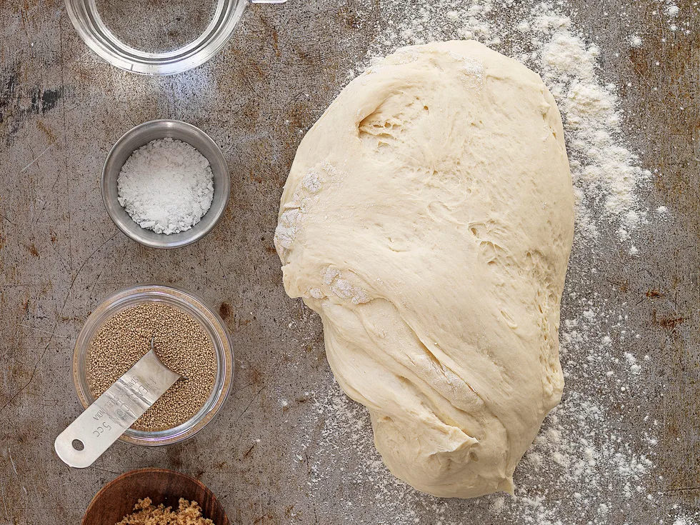 3.Place the dough back into a clean, lightly oiled bowl. Cover with a damp tea towel and set aside in a warm place for 1 hour or until doubled in size. Remove the tea towel and knock back or punch the dough a few times to release the air, then let rise again for 30 minutes before using.