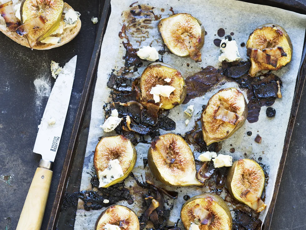 4.Remove from the oven and add the blue cheese. Leave to cool slightly – eating them warm or at room temperature brings the flavour out more than eating them piping hot from the oven.