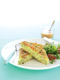 4.Spoon into the baking dish and bake in the preheated oven for 20-25 minutes until golden and set. Set aside to cool for 10 minutes before cutting.