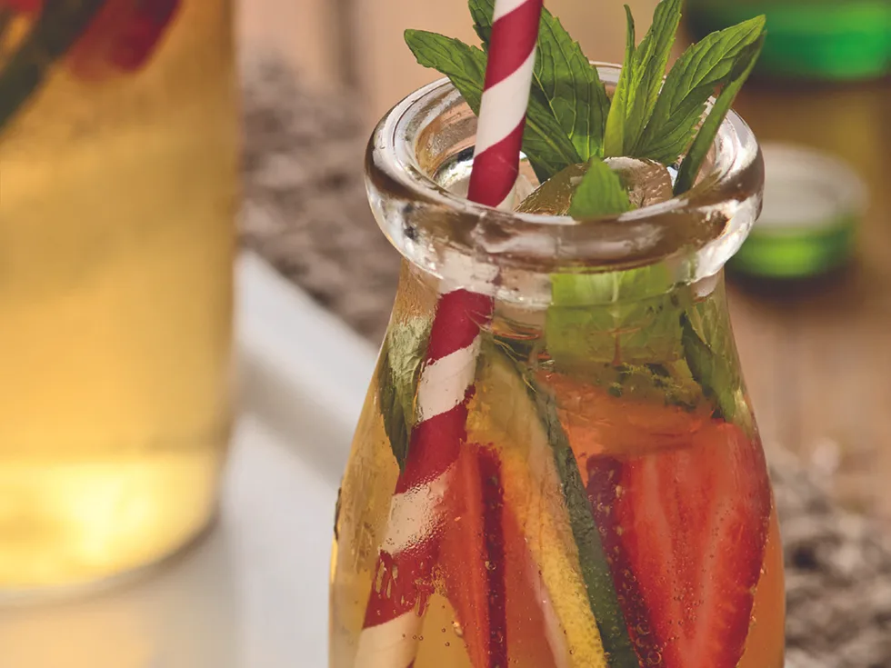 To make this a cocktail simply add 200ml vodka. Any seasonal fruits can be used, however firmer fruits (like apples) work best as they don’t fall apart.