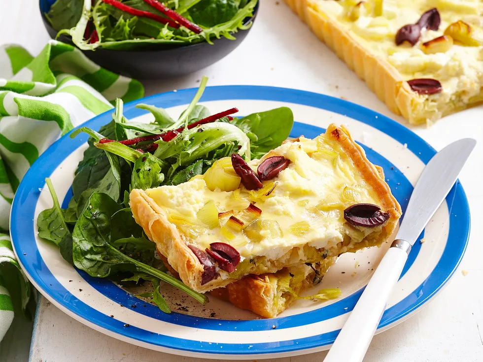 5.Pour over combined eggs and milk. Bake for 25-30 minutes until filling is set and golden. Serve with mixed salad leaves.