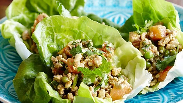 4.Remove from heat. Stir in yoghurt and coriander. Serve in lettuce cups, sprinkled with extra coriander. Accompany with extra yoghurt.