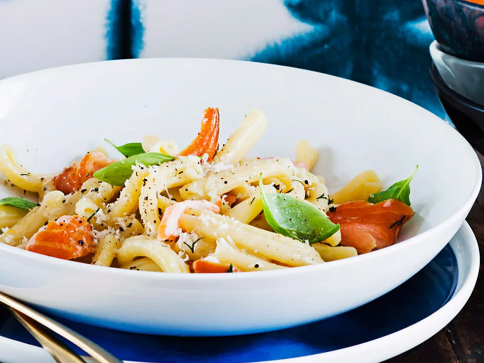 Looking for a new way to serve fish that will please everyone? Hot-smoked salmon casarecce is creamy and rich, full of delicious smoky flavours. The best part is, it’s ready in twenty minutes!