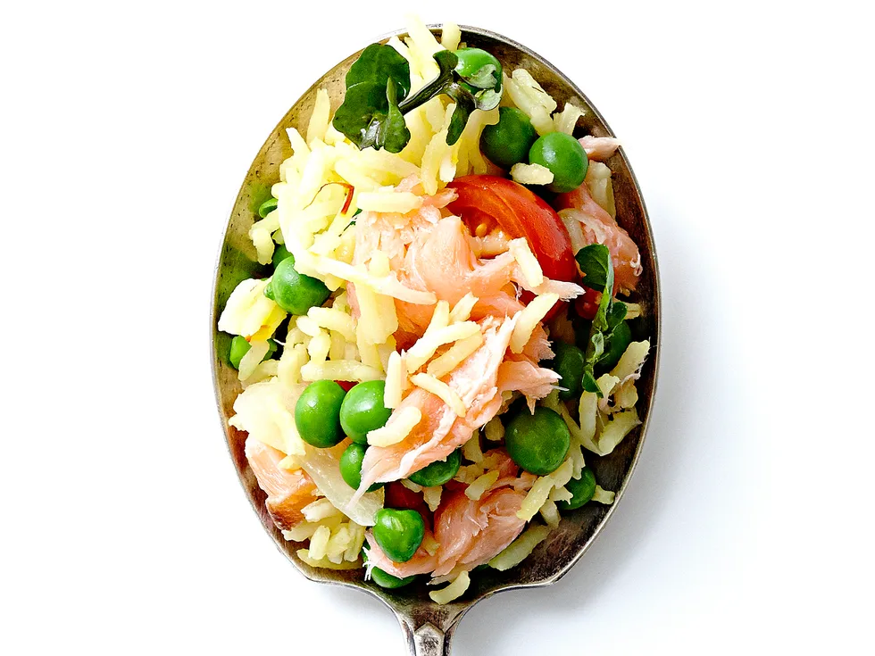 Pea, smoked trout and herb pilaf