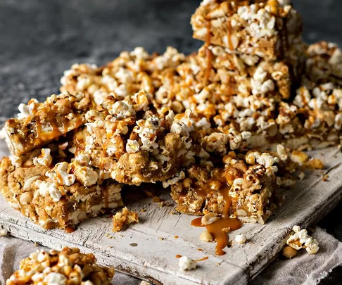 Sticky peanut popcorn blondies