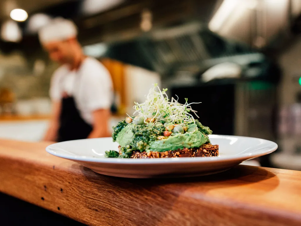 Standard Kitchen resides in the old financial district in a building that recently won the Dunedin Heritage Re-use Award. It’s a stylish home for James Roberts’ menu of seasonal, raw, vegan, gluten-free food. Here you’ll find organic green vegetables and herbs from Potato Point Produce which are grown in soil, not hydroponically, which is quite a challenge so far south. Eggs come from Agreeable Nature in Balclutha, where the hens are raised on pasture, which helps produce a deeper yolk colour. A flavoursome dish of spiced chickpeas and baba ganoush on oat and walnut toast with beetroot, seeds and a spiced yoghurt looks simple but belies the fact that all the ingredients are created in-house, starting with James’ popular flour-free seed bread.